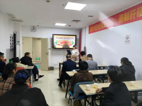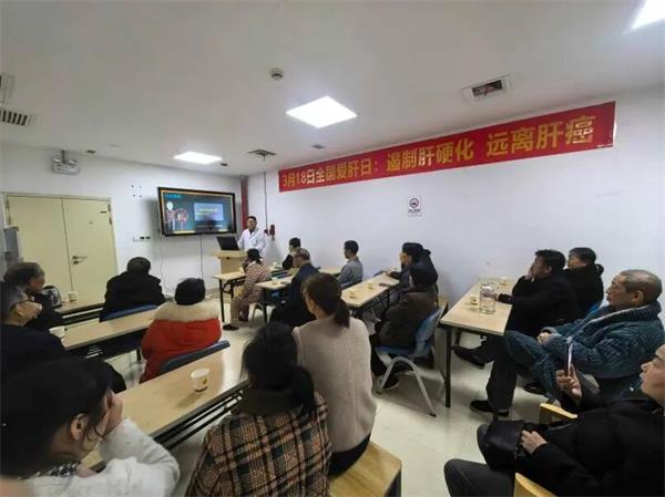 活动中,消化内科邓阳护士长介绍了全国爱肝日设立意义、活动主题及流程,强调遏制肝硬化、做好全程管理是远离肝癌的关键。朱大磊主任以专题科普课形式,讲解肝脏功能、肝硬化与肝癌的相关知识,拆解“肝炎—肝硬化—肝癌”核心要点,普及筛查方法、规范治疗方案及日常护肝原则。
