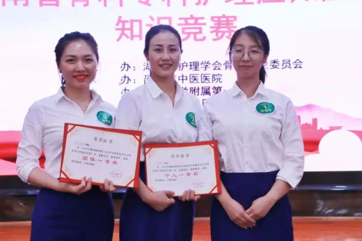 9月6日,由湖南省护理学会骨科专业委员会主办,邵阳市中医医院承办的2019年湖南省护理学会骨科专业委员会年会暨骨科护理新技术新进展研讨班顺利召开,本次会议历时三天。在首先进行的骨科专科知识竞赛中,邵阳市中医医院“白衣天使”金顺姬、朱妃彤、刘娜娜组成的代表队技压群雄,从24个医院代表队中脱颖而出,一举摘得总分第一名的好成绩,荣获团体冠军。刘娜娜同志荣获个人一等奖。